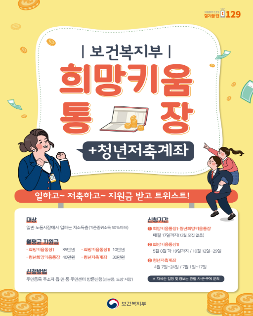 ** 청년의 푸른 미래, 보건복지부가 응원합니다. “청년저축계좌” 4월 7일부터 모집 시작