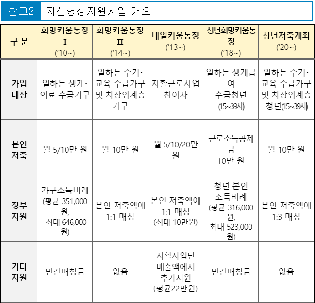 - 청년저축계좌 및 기타 보건복지부가 운영 중인 자산형성지원 제도에 대한 안내, 오프라인 신청방법, 홍보 자료 등은 보건복지부 누리집(www.mohw.go.kr)을 통해 현재 확인할 수 있다.