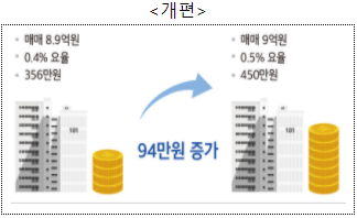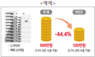 - 6~9억원 구간의 임대차 중개보수(중개수수료) 부담이 매매보다 높아지는 역전현상(매매 0.5%, 임대 0.8%) 해소