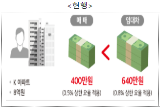 * 매매·임대차 역전(8억 거래 시) : (현행) 매매 400만원 < 임대차 640만원<240만원↑>