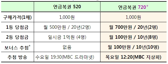 ** 연금복권 신상품(연금복권 720) 출시