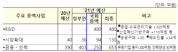 [ '21년 예산 국회증액 주요내용 (7.5조원 수준) ]