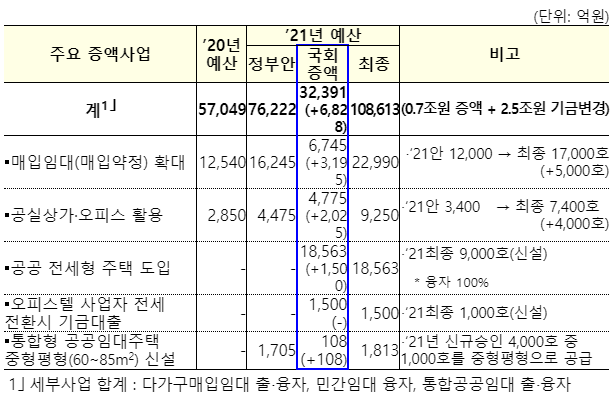 □ ’21년 예산소요 1.9만호, 0.68조원 국회증액