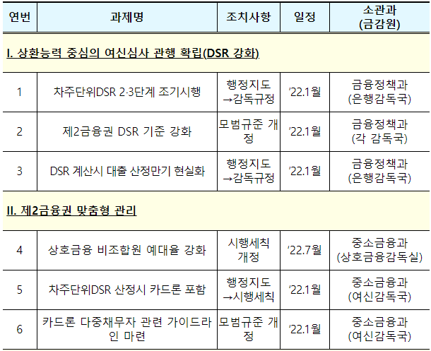 1. 차주단위 DSR 2‧3단계 조기 시행(2단계 ‘22.1월~, 3단계 ‘22.7월~)