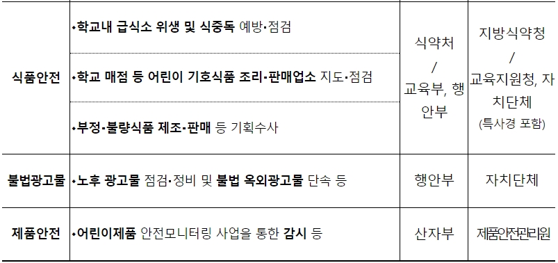 ㅇ 개학기, 학생안전 위해요인 사전 제거 및 안전한 학교환경 조성을 위한 관계부처 합동 학교주변 안전점검・단속 필요