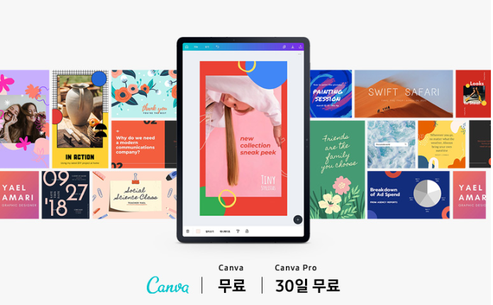2) Canva : 전문가 수준의 그래픽 디자인도 OK : Canva를 이용해 PPT에 넣을 이미지부터 SNS 게시물, 외부 포스터까지 전문가 수준으로 만들어 볼 수 있습니다.(30일 무료)
