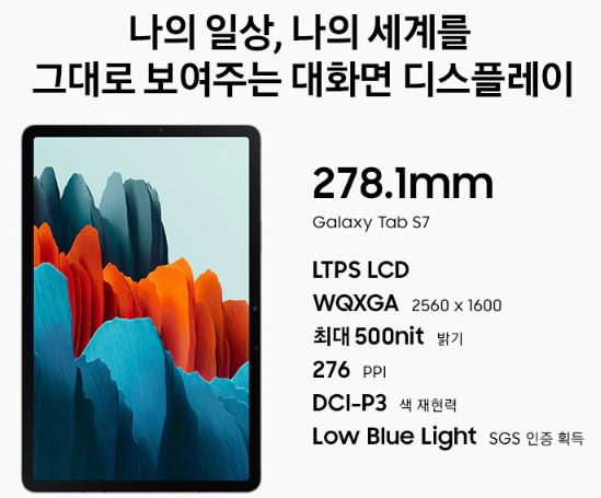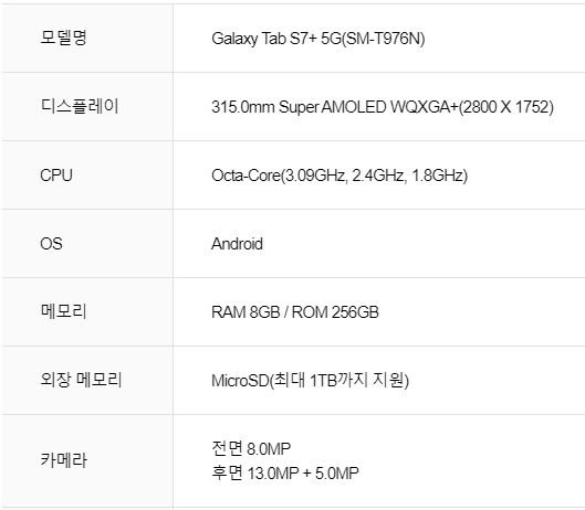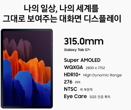 * 위 사양은 갤럭시 탭s7+ (Galaxy Tab S7_+) 사양입니다.