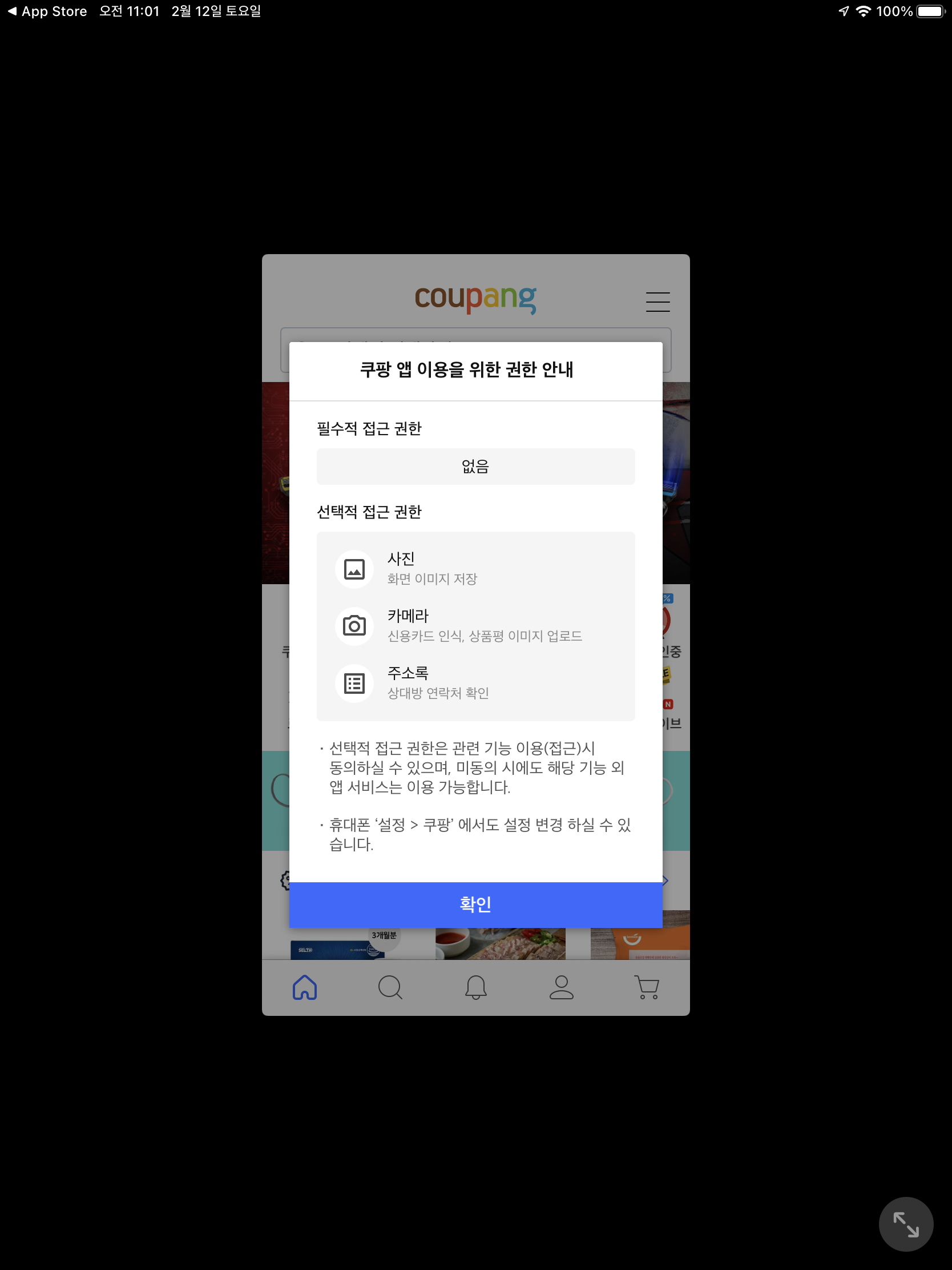- 혹시나 아직 쿠팡 앱을 사용하지 않으셨던 분들은 구글 플레이스토어 혹은 앱 스토어에서 다운을 받으시기 바랍니다.