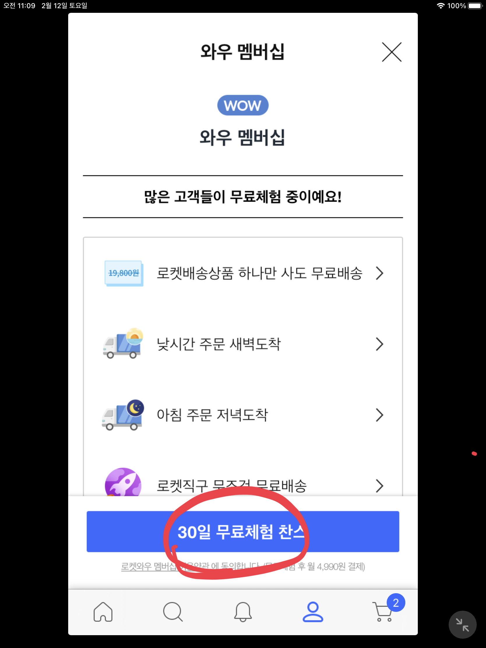 5. 쿠팡 갤럭시 S22 사전예약 방법, 준비 사항 : 와우 멤버십 가입하기