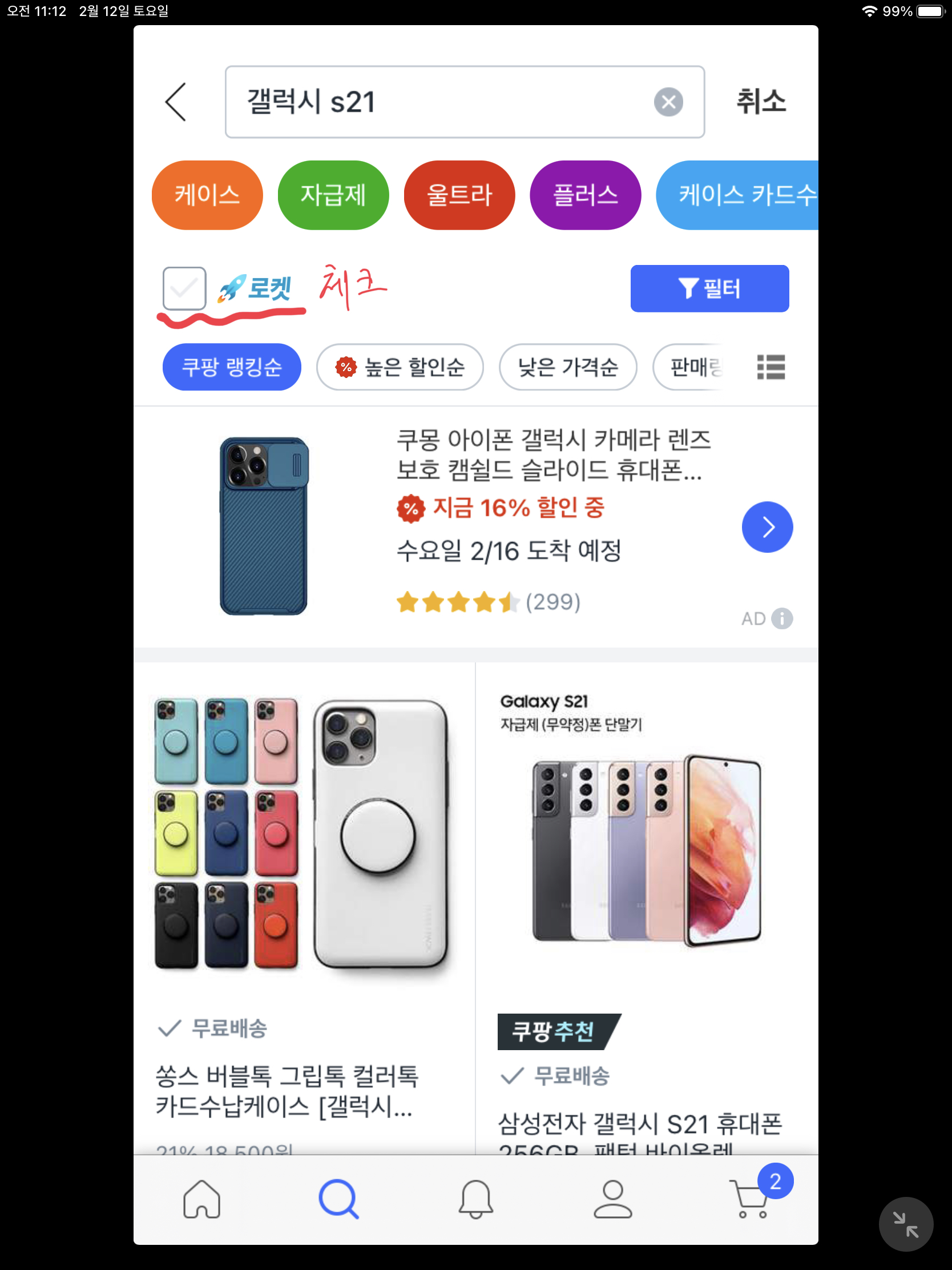 6. 쿠팡 갤럭시 S22 사전예약 당일 검색 방법