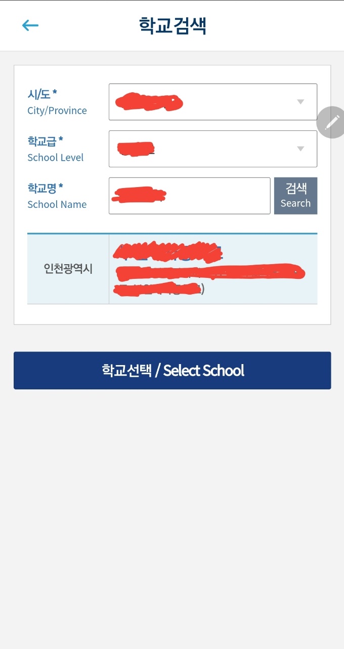 6. 학교 검색에서 지역, 학교급 그리고 학교명을 넣습니다.