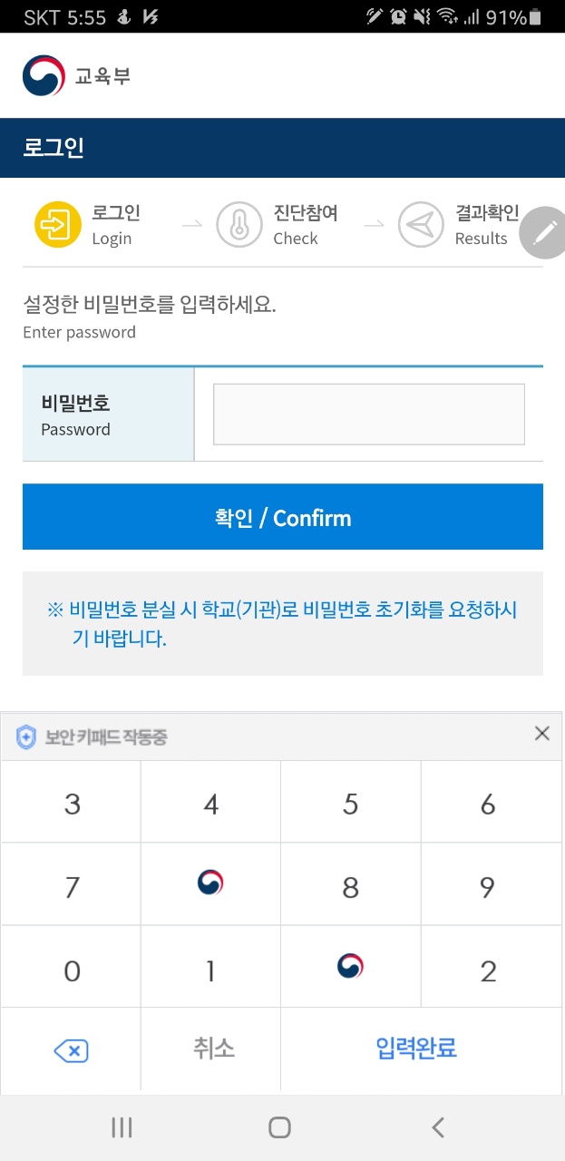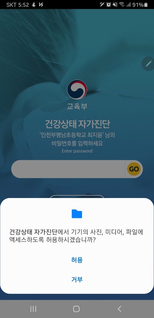 1. 먼저 건강상태 자가진단 앱을 실행합니다.