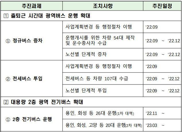 운행 거리가 길고 입석 및 무정차 통과가 잦은 경기 북부지역 노선은 연말까지 출퇴근 운행 횟수를 15% 확대한다고 합니다.