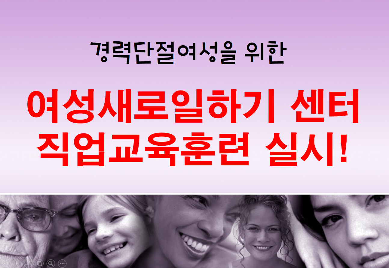 경력단절여성을 위한 여성새로일하기센터 직업교육훈련 실시!
