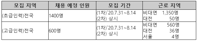 모집 인원은 합쳐서 2000명이네요~