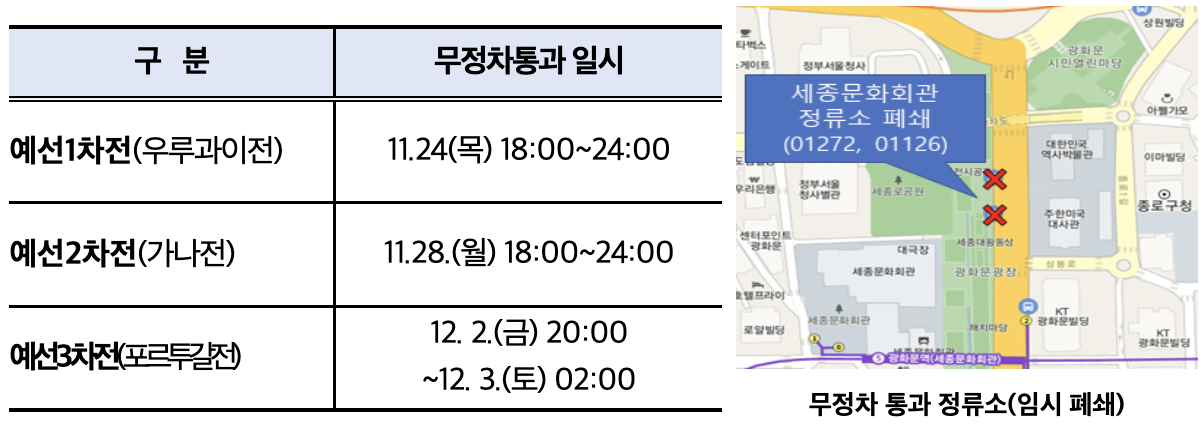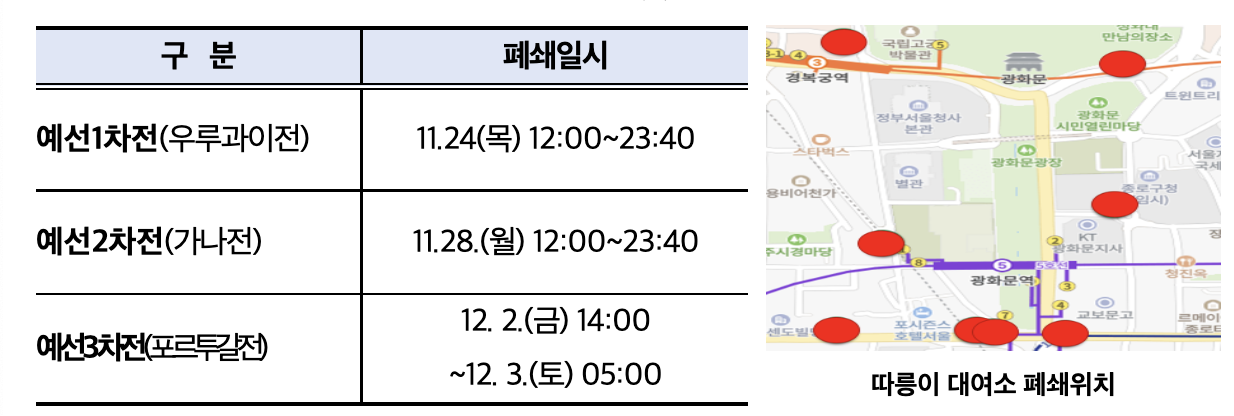 -> 폐쇄일정 : 거리응원 시작 1시간 전 ~ 거리응원 종료시점까지
