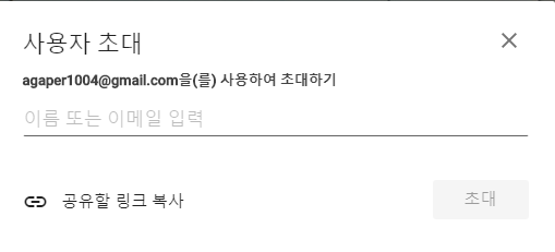상단의 사람 모양 이미지는 참여한 사람들이 다른 사람을 초대하는 것이 가능합니다. 초대하기는 위에서 이야기한 방법과 동일합니다. 이름 혹은 이메일, 또는 링크 복사 전달을 통해서 가능합니다.
