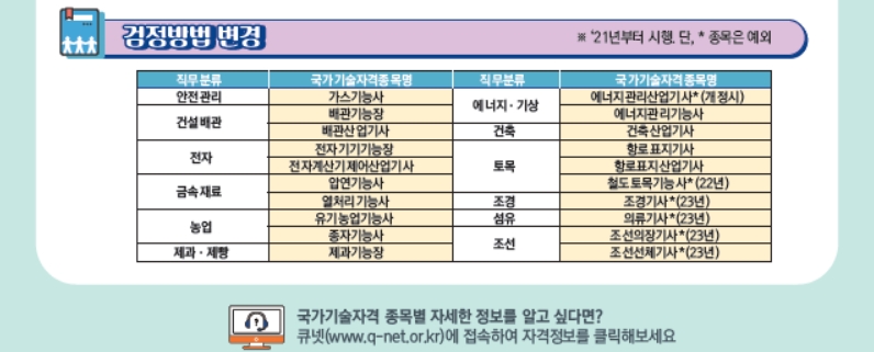 국가기술자격 종목이 신설되고 폐지되는 것 그리고 시험 유형의 개편, 검정 방법의 변동 등은 정말 예민하게 살펴야 할 부분입니다.