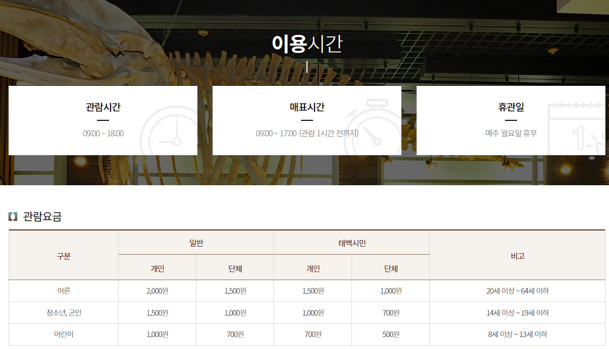 문의 전화 : 태백고생대자연사박물관 033)581-8181, 3003
