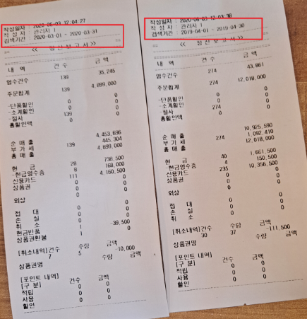 ↳ ‘20.3~4월, 비교대상기간 비교를 통한 소득감소 여부 증빙서류