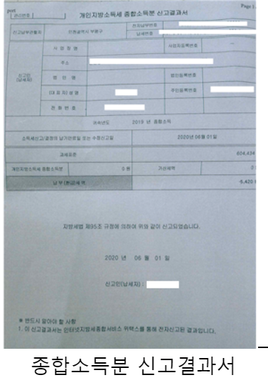 1 종합소득세과세표준확정신고 및 납부계산서 미비 사례