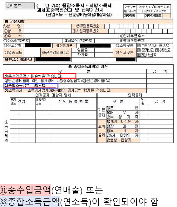 O : 제출이 잘 된 사례: 총 소득금액 및 매출액 확인 가능