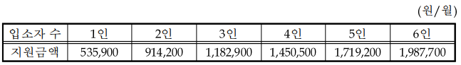 - 가구구성원이 7인 이상인 경우, 1인 증가시마다 262,000원씩 추가 지급