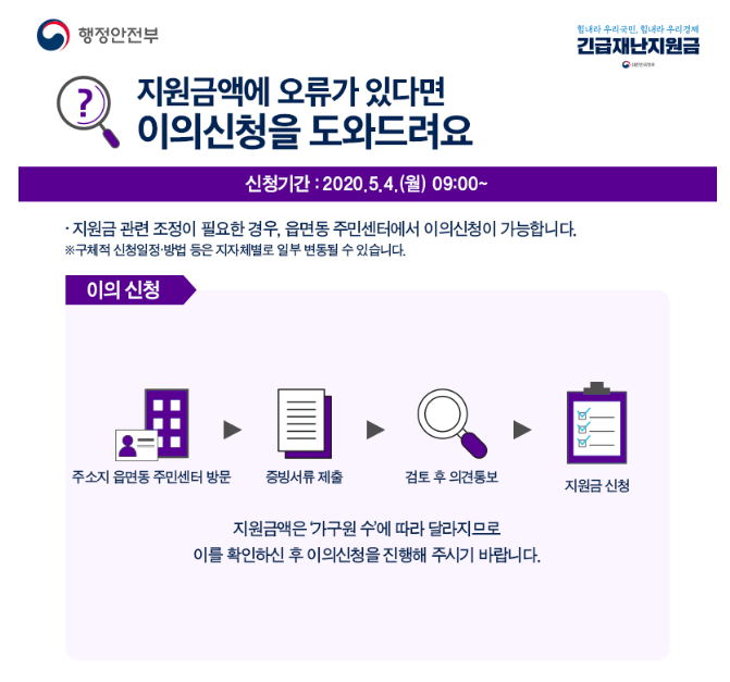 ① (대상확인) 5.4일부터 긴급재난지원금 홈페이지에서 조회 (URL: 긴급재난지원금.kr)