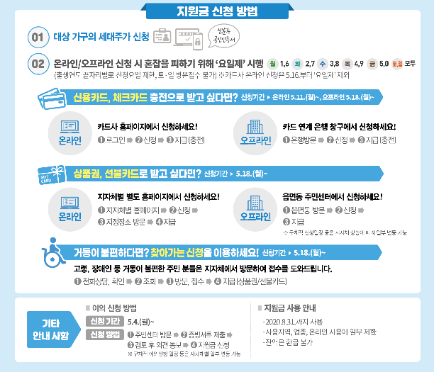 - 온라인 신청: 5.11일 신청 시작 → 5.13일 지급 시작