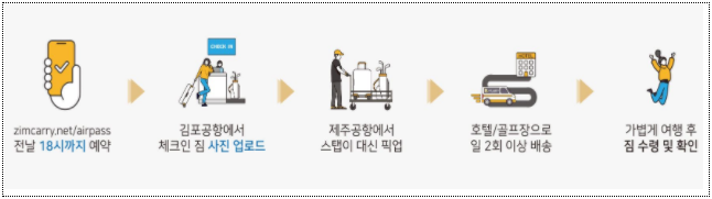 ㅇ 이에 따라, 해당 항공편을 이용하는 승객은 출발 전일 18시까지 짐배송업체 누리집(www.zimcarry.net 또는 검색포털에서 “짐캐리”, “에어패스” 검색)를 통해 출발 항공편, 운항정보 및 배송지 등을 입력하고 예약하면 된다.