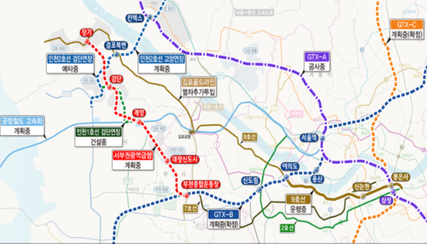 * 서부권광역급행철도는 GTX-B 노선을 공용하여 여의도용산 등 직결 추진