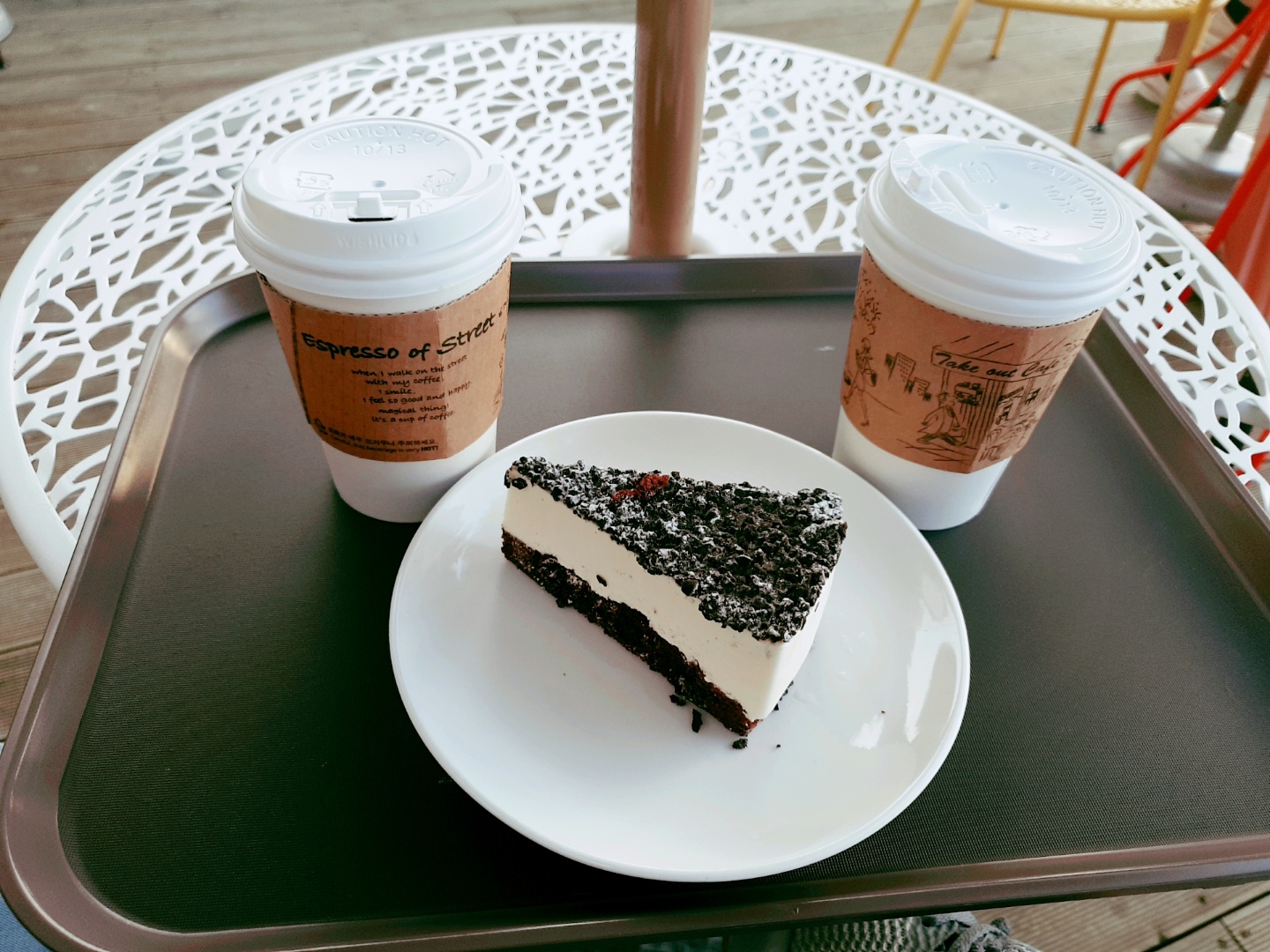 저희도 외부 좌석이 하나 비어 있길래 분주하게 자리를 잡았습니다.