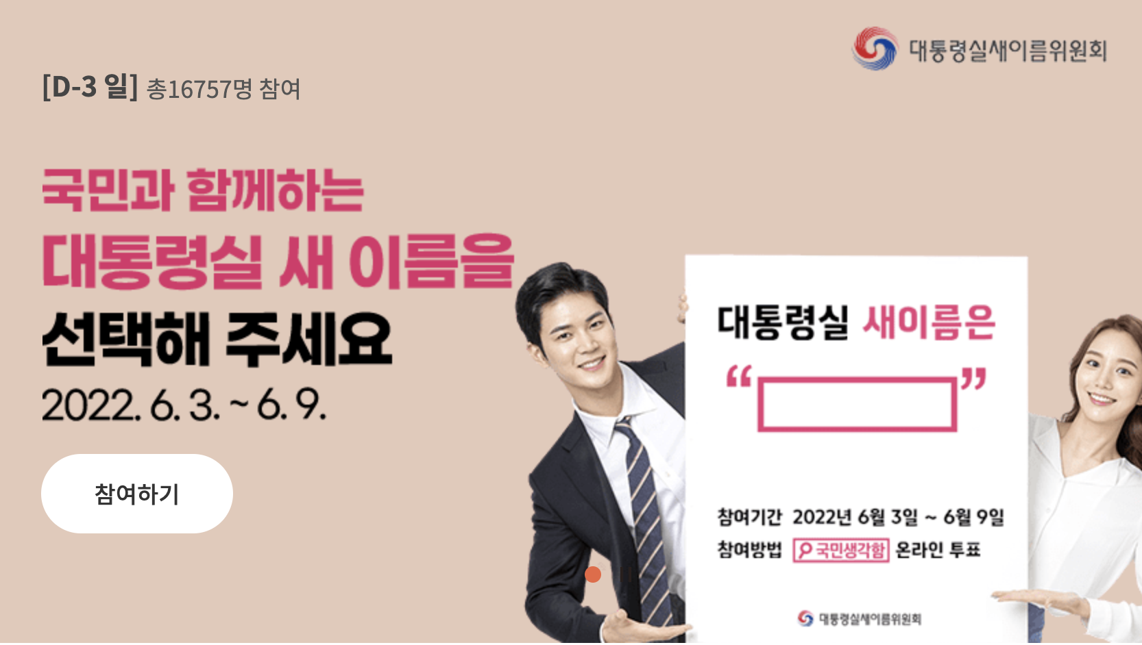 -> 국민생각함 홈페이지 바로가기!(대통령 집무실 이름 선호도 조사)