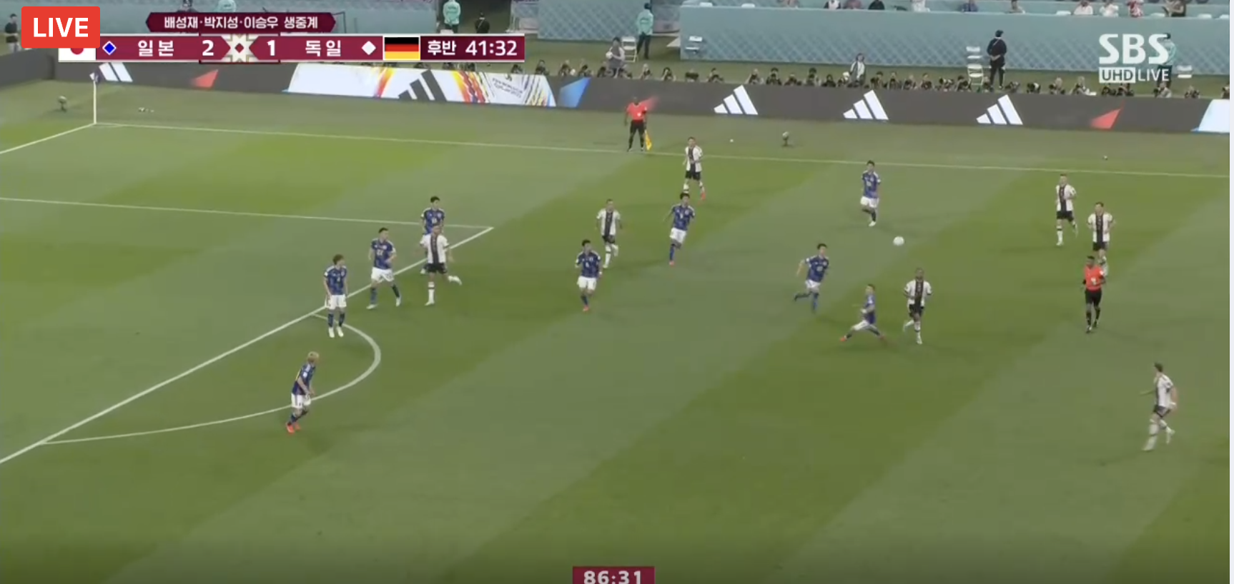 독일의 전반전 전방압박은 일본 공격진을 완전히 차단하는 듯 했습니다. 하지만 후반 일본에게 동점골을 먹은 이후로는 전방 압박이 점점 느슨해졌습니다.