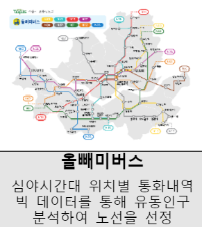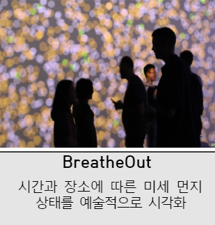 ㅇ 주제전에는 대기질 변화의 예술적 시각화, 잠재적 사고예상 지역 옐로우 카펫 설치, 심야시간대 유동인구가 많은 지역을 분석하여 올빼미 버스를 운행한 사례 등 데이터 기반 디자인 작품들이 전시됨