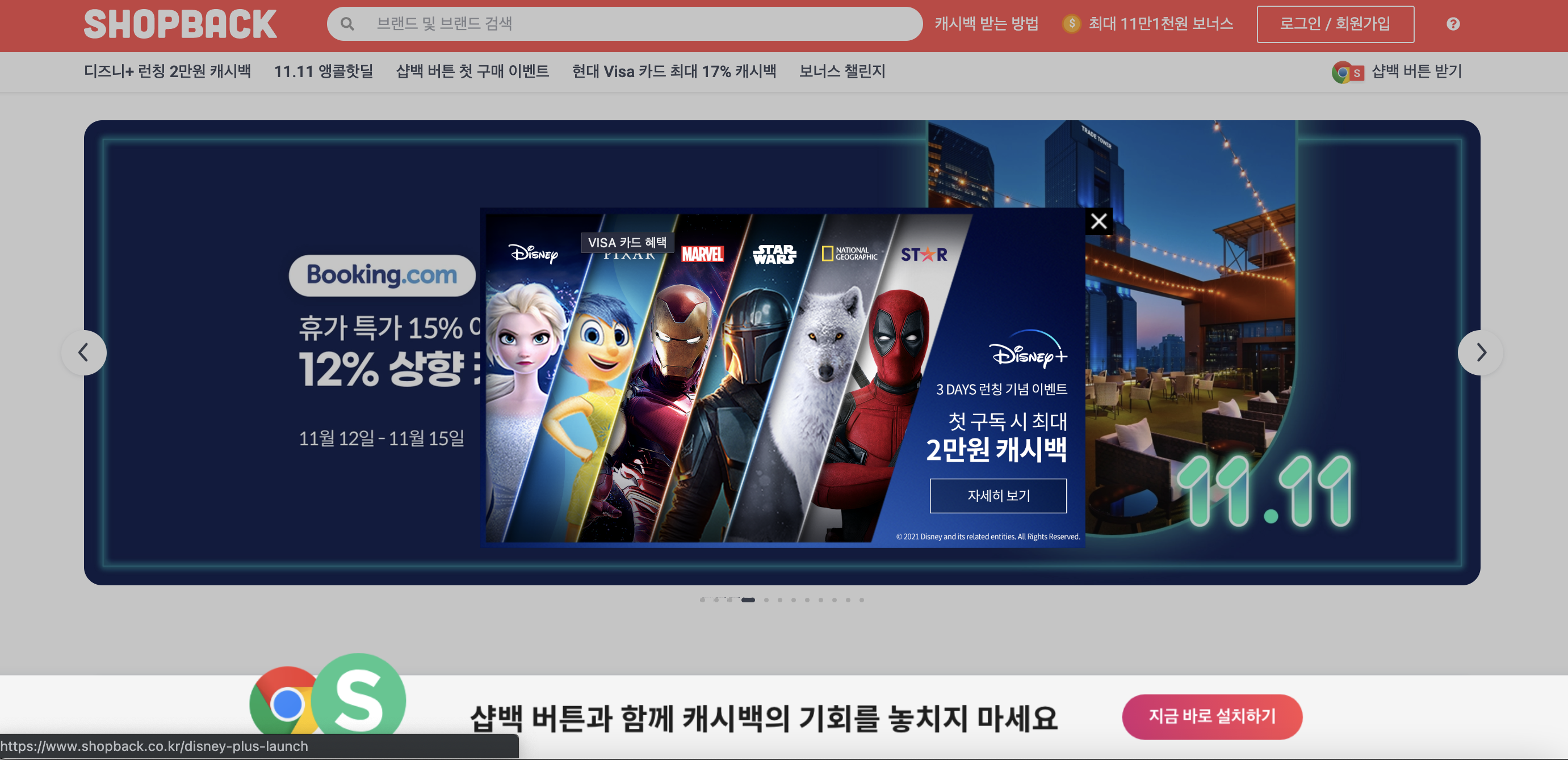 어차피 디즈니 플러스 구독하려면 샵백 코리아 쇼핑을 통해서 할인을 받으면 일석이조입니다.