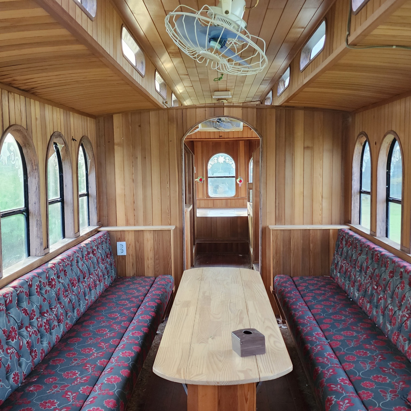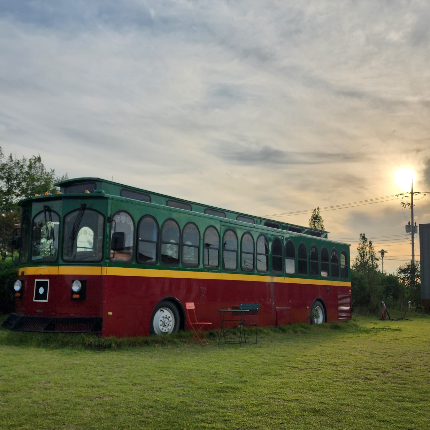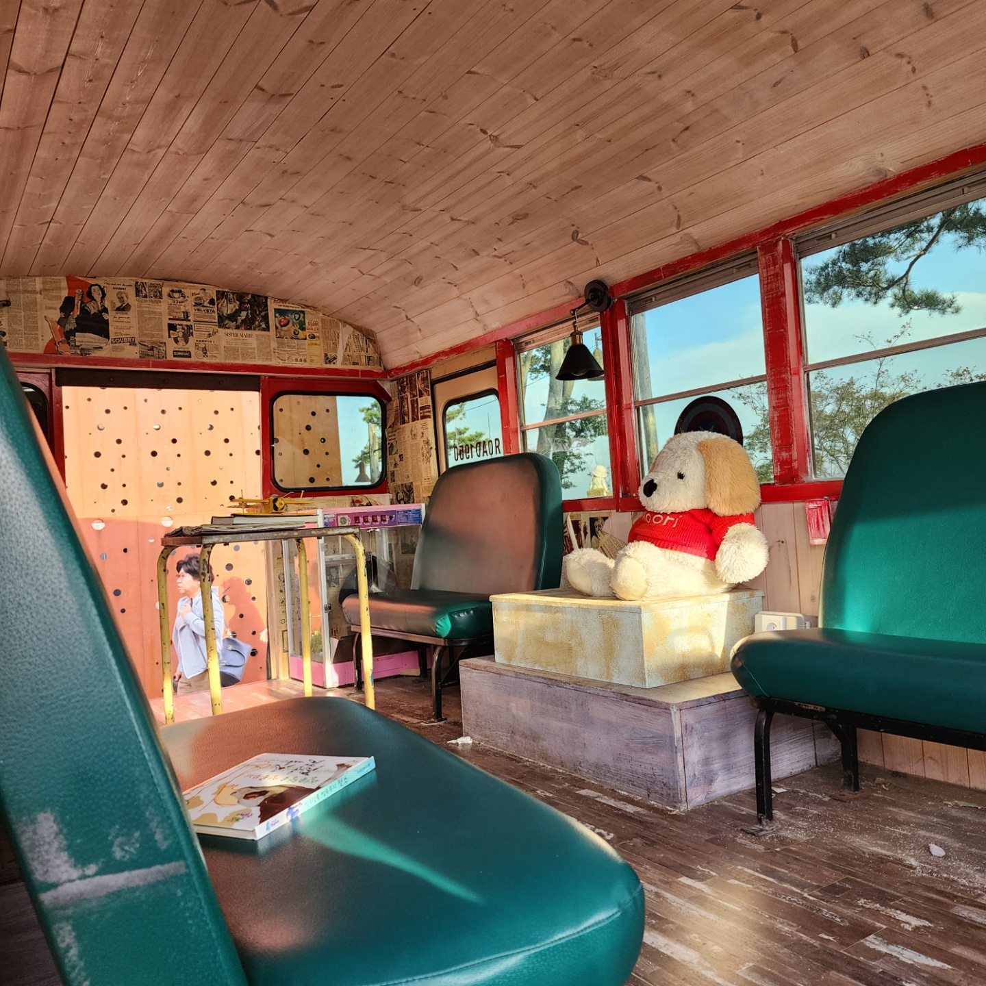 잔디 공간이 있고, 버스 같아 보였는데 오래된 캠핑 차? 버스? 가 있어서 둘러보았습니다.