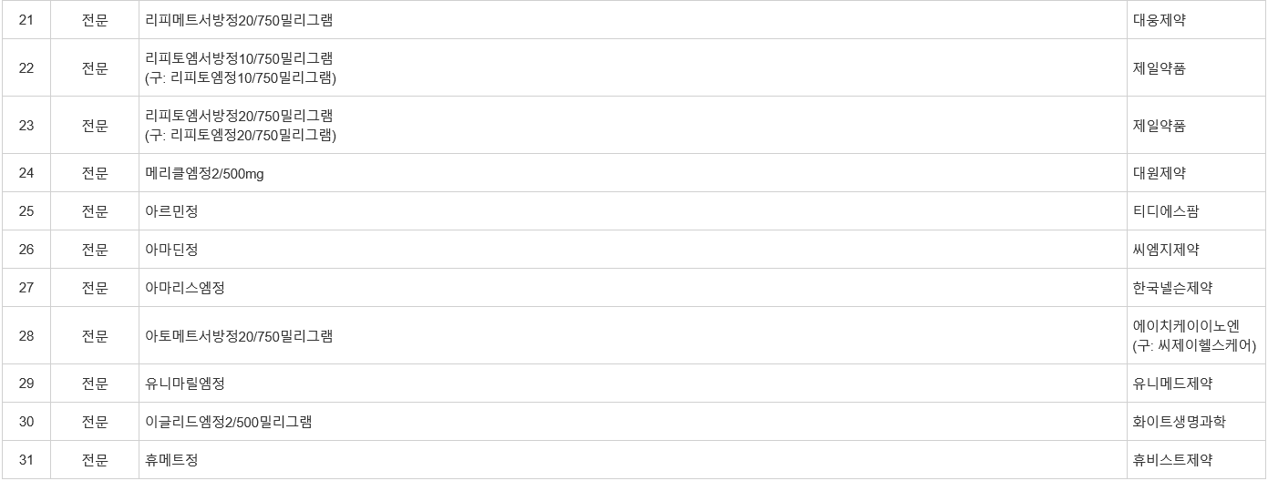 ** 메트포르민 의약품 31품목에 대해 처방․조제 중지