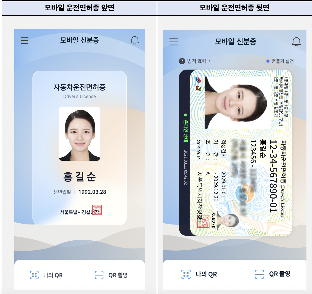모바일 운전면허증 사용처별로 특화된 신원확인 방식도 다양하게 제공됩니다.