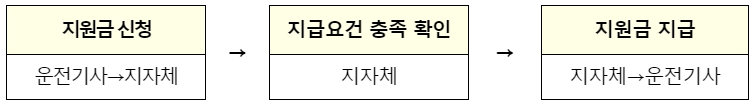□ 신청은 운전기사가 소속 택시법인에게 직접 신청서를 제출하고 택시법인이 이를 취합하여 자치단체에 제출하면 된다.