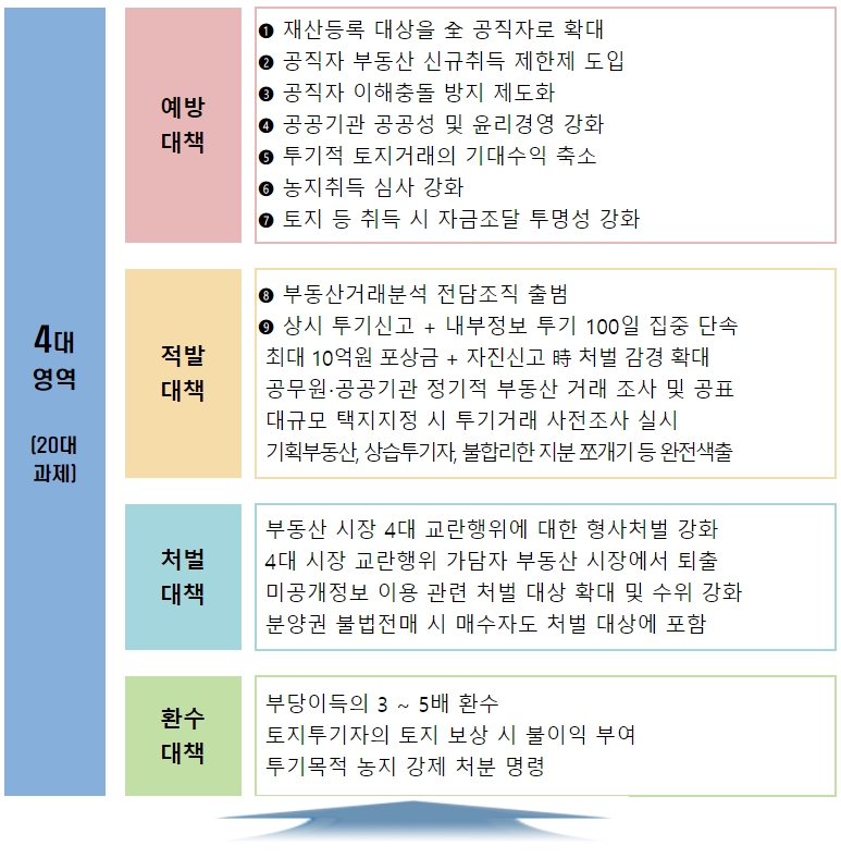 부동산 투기근절 및 재발방지대책은 4가지 분류로 구분할 수 있습니다.