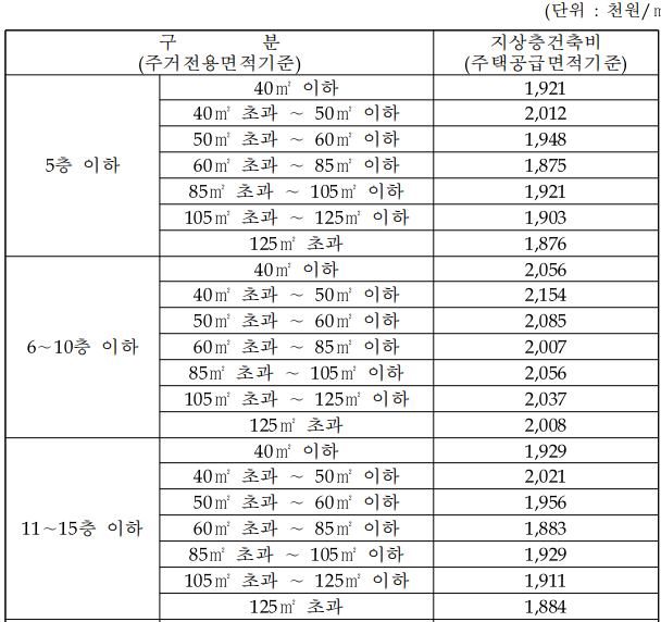 기본형건축비 고시 내용 : 지상층, 지하층 건축비