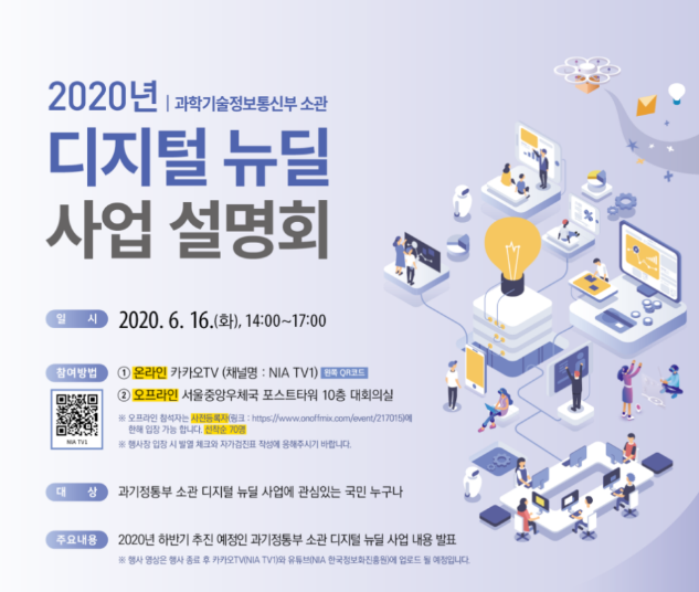 과학기술정보통신부(장관 최기영, 이하 과기정통부’)616일 화요일, 14시부터 과기정통부 소관 디지털 뉴딜 사업설명회를 개최한다.