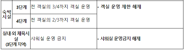 ○ 아울러 사회적 거리두기 3단계 실내·외 체육시설에 적용되던 샤워실 운영제한도 해제한다.