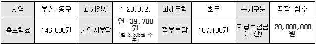 3. 부산 동구 호우로 인한 공장 침수 풍수해보험 사례입니다.