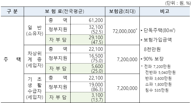 이 풍수해 보험은, 주택, 상가, 공장 등 많은 부분에서 가입대상이 되며 혜택을 주고 있습니다.