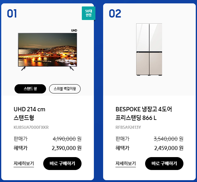 - 제품별 준비된 수량이 선착순 소진된 경우 조기 종료될 수 있습니다.
