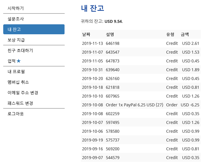 그리고 다른 사이트에 비해서 설문조사에 대한 대가가 괜찮은 편입니다.