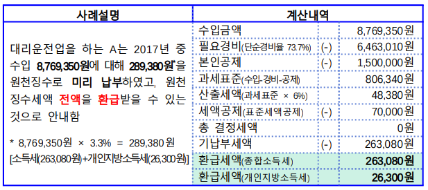소득세 환급금 액수, 사례