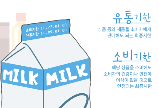 * 유통기한(sell-by date) : 제품의 제조일로부터 소비자에게 유통판매가 허용되는 기간